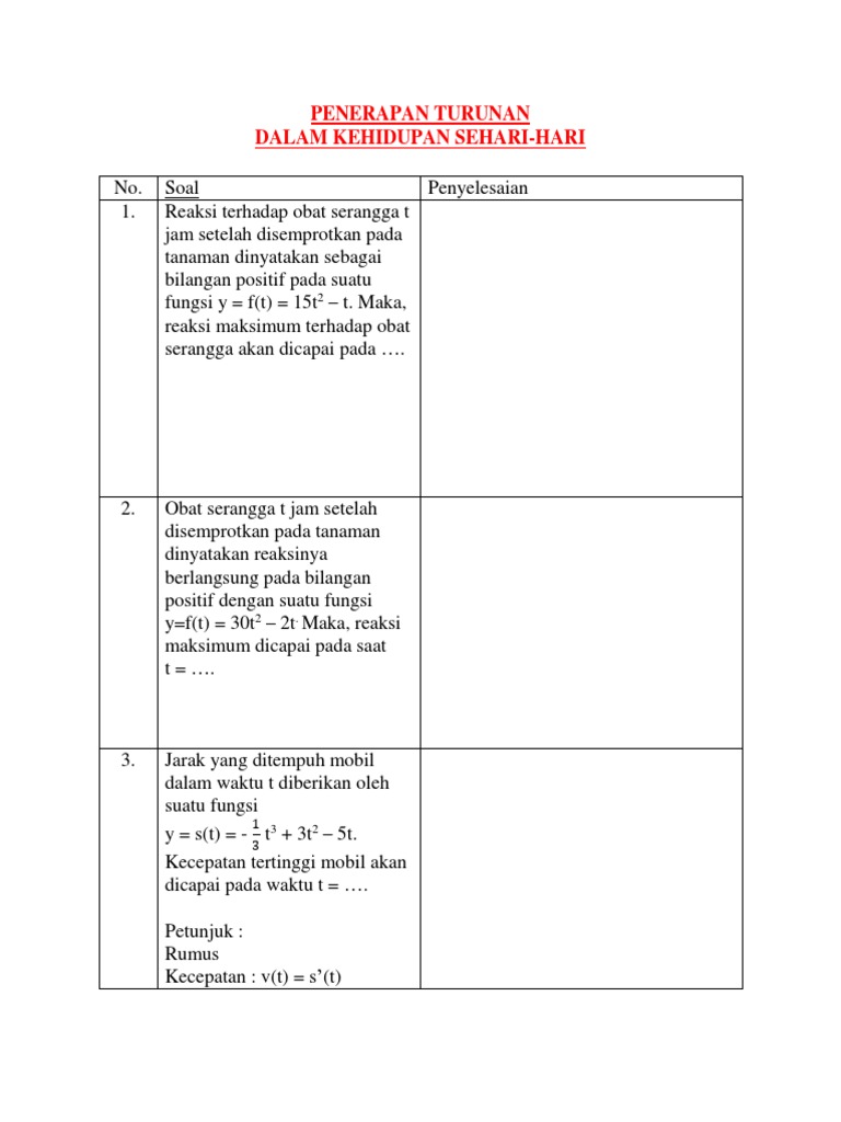 Contoh Soal Aplikasi Turunan Fungsi Dalam Kehidupan Sehari Hari Contoh Soal Terbaru from rumuspintar.com We did not find results for: Maybe you would like to learn more about one of these? Check spelling or type a new query.