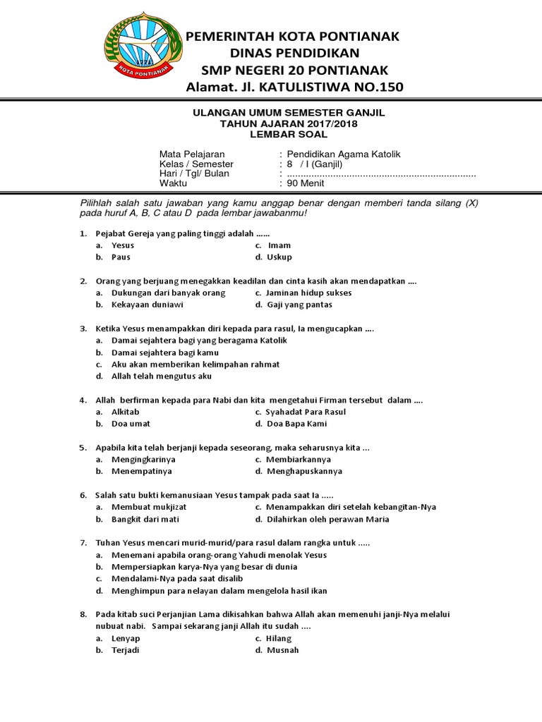 Dan essay jawaban kunci kelas kristen soal agama 7. Download soal dan kunci jawab siap uas pendidikan agama kristen. Soal dan jawaban agama katolik kelas 11 contohsoal net. Bagaimanakah usaha allah menyediakan keselamatan bagi manusia?4. ← soal uts genap corel draw x4 pg soal uts genap kelas 10 bahasa inggris peminatan →.