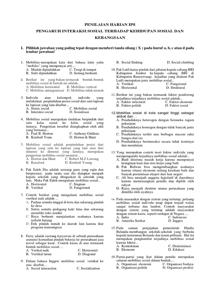 Contoh soal essay bahasa inggris kelas 10 semester 2 lengkap dengan kunci jawaban. Saluran mobilitas sosial pada diskripsi tersebut adalah …. Soal essay pkn kelas 9 dan jawabannya. Maka mobilitas sosial dapat dimaknai sebagai pergerakan seseorang dalam kehidupan masyarakat yang bisa menyebabkan perubahan. What are you doing … sunday?